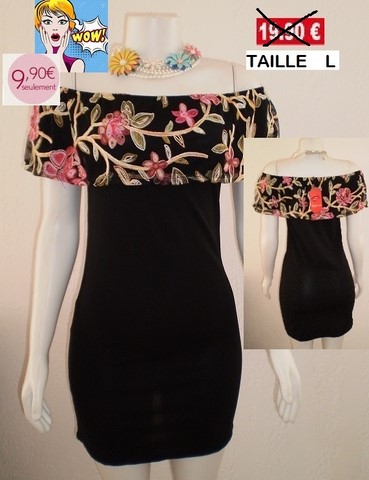 ROBE NOIR VOLANT BRODE TAILLE L
