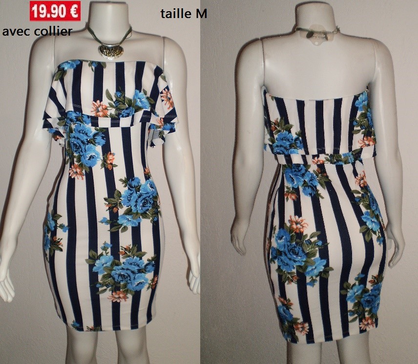 ROBE RAYEE bustier +COLLIER TAILLE M