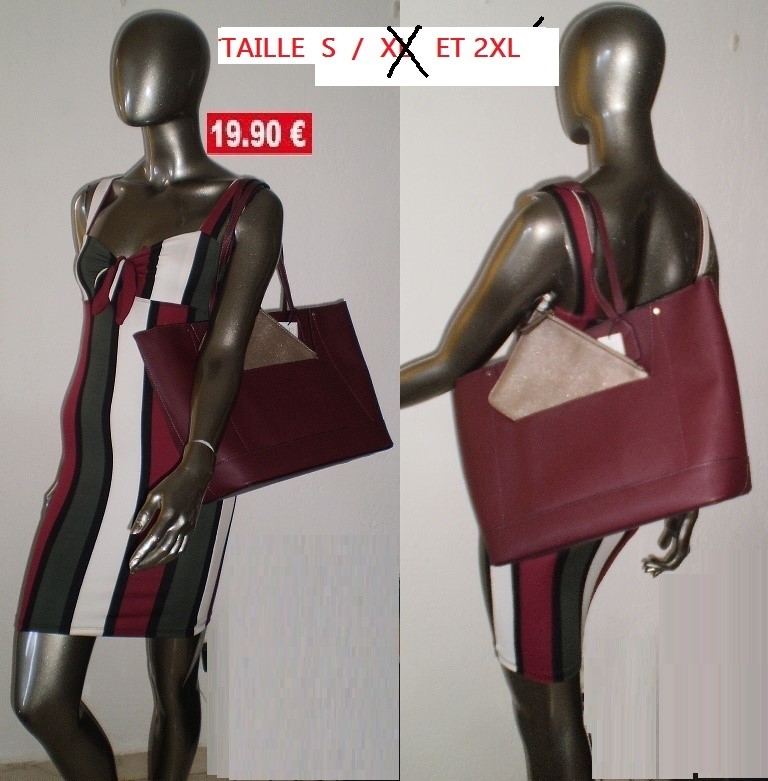ROBE RAYEE KAKI/BORDEAU TAILLE S