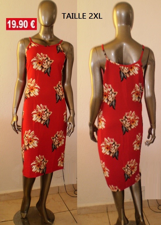 ROBE ROUGE FLEURS TAILLE 2XL