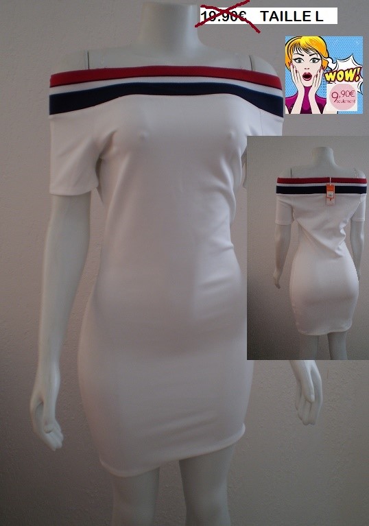 ROBE STRETCH BLANC EPALLES NUES SPORT TAILLE L