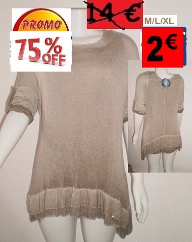 TUNIQUE MARRON Aquarelle Blu(ITALIE)BAS STRASS M /L/ XL