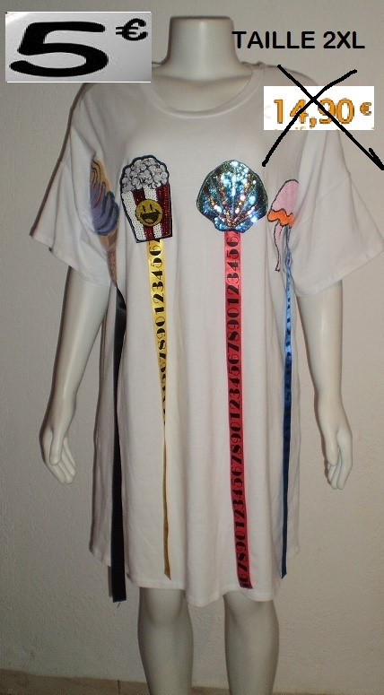 TUNIQUE STICKERS BLANC TAILLE 2XL