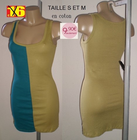 ROBE EN COTON BLEU/KAKI TAILLE S ET M