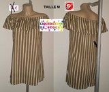 ROBE RAYEE EPAULES NUES KAKI TAILLE M